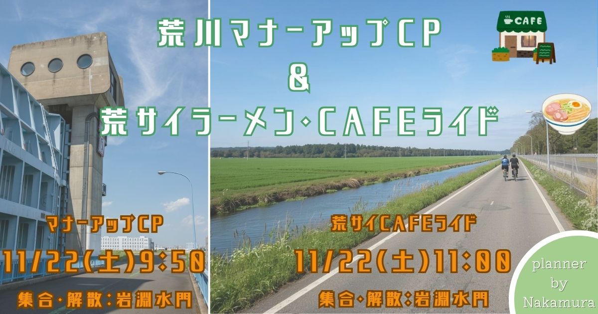 | 【日時】 | 〇マナーアップ 9:45~11:00 〇荒サイラーメン・CAFEライド 11:00~15:00 |